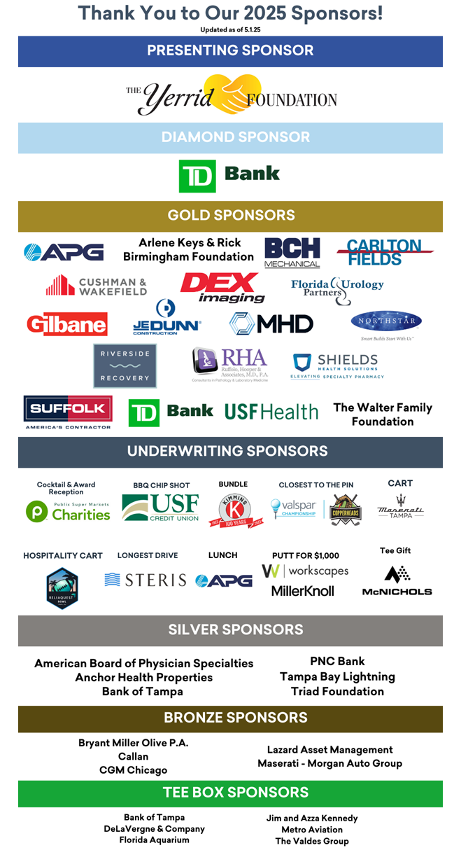 For additional questions, please call Haley Miller, Director of Events & Corporate Partnerships, at 813-844-7572 or email hmiller@tgh.org.