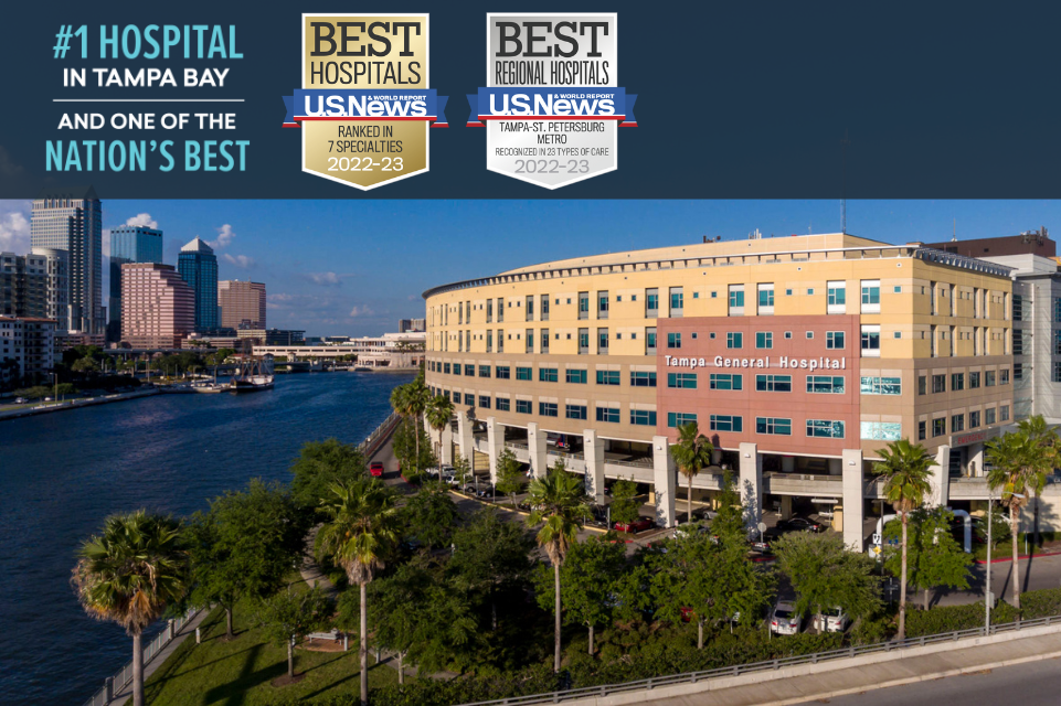 Tampa, FL (July 26, 2022) – Tampa General Hospital is once again ranked as the #1 hospital in Tampa Bay and is third highest ranked in Florida by U.S. News & World Report for 2022-2023. Tampa General continues to be named by U.S. News & World Report as Tampa Bay’s top hospital, ranks as one of the nation’s top 50 hospitals in seven medical specialties, and is the only hospital in Florida ranked by U.S. News & World Report in either the top 50 nationally or among the top 10% of U.S. hospitals in all 12 data-driven specialties for 2022-2023.