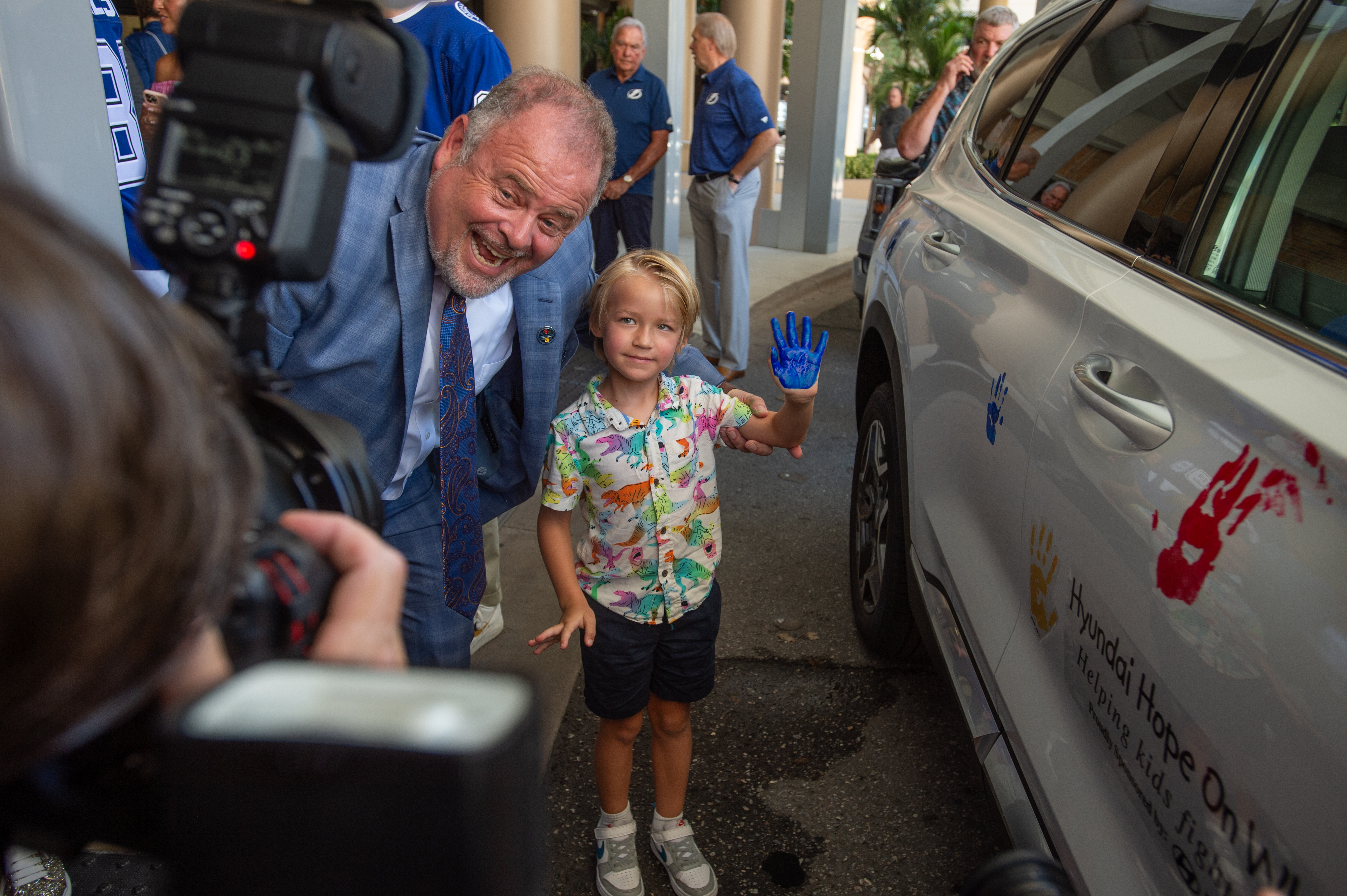 Immediately following today’s check presentation, pediatric cancer patients who have received treatment at the TGH Children’s Hospital dipped their hands in colorful paint and placed their handprints on a white Hyundai vehicle — the Hope On Wheels hero vehicle — to commemorate their brave battles with cancer.