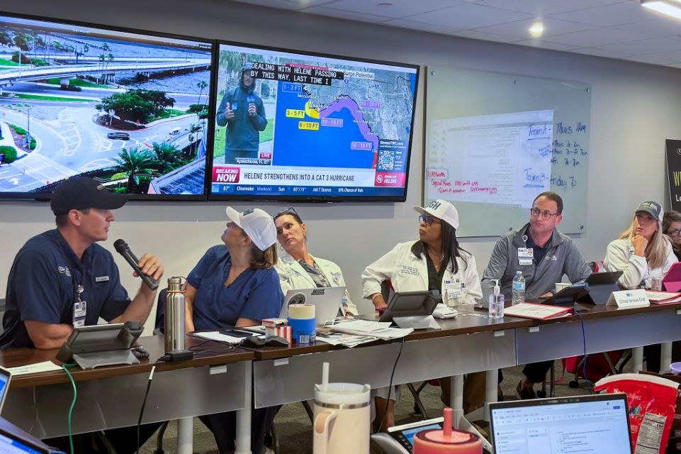 The clinical and non-clinical teams at Tampa General engage in emergency management training with partners in government and across the community several times throughout the year to plan for and practice response to severe weather events.