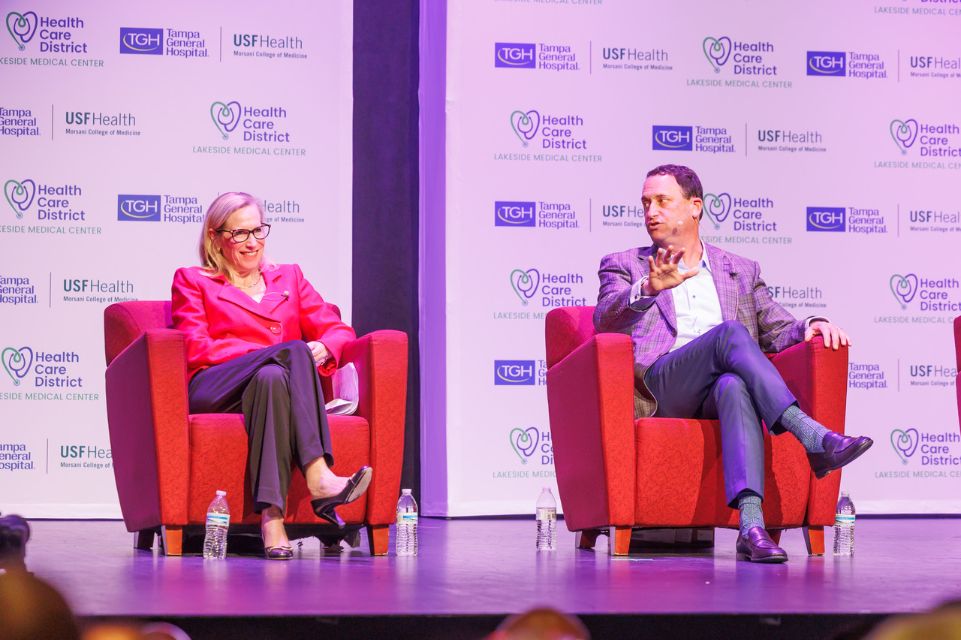 Stacey Brandt, executive vice president and chief administrative officer for Tampa General, and Ron Doncaster, vice president and administrator of Lakeside Medical Center, joined Couris and Davis on stage to invite feedback from the community and answer questions.